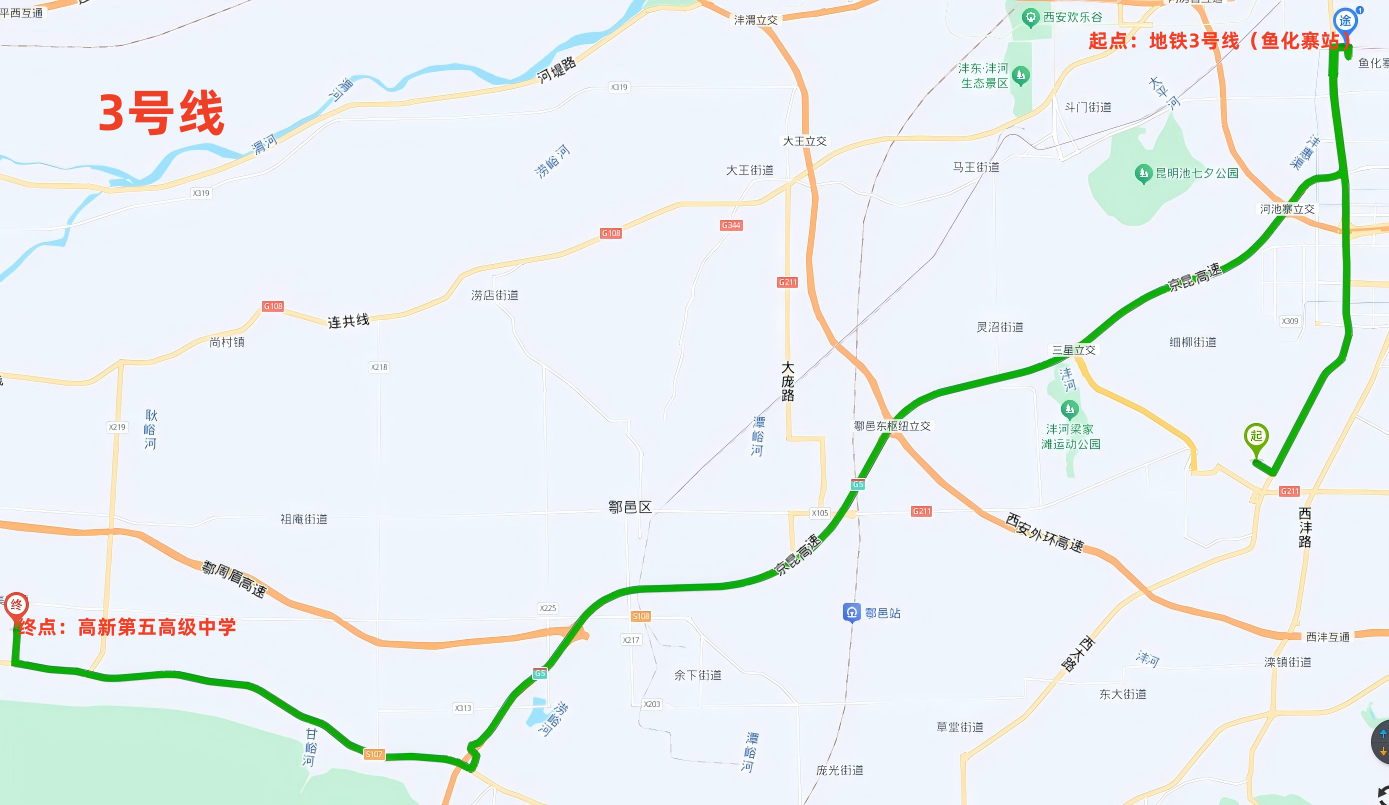 鱼化三路→西三环→京昆高速→关中环线→振兴路